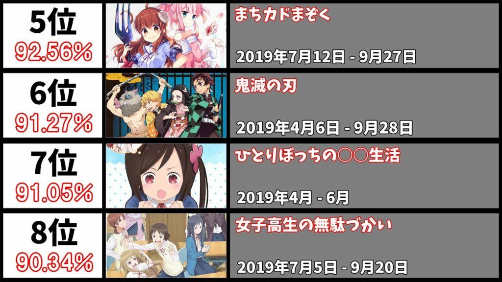 Write an article about 2019年アニメ – 最も視聴者の評価が高かった作品39選 in 400 Japanese characters