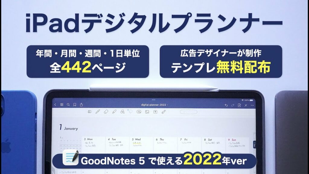 この動画では、【iPad手書き手帳2022 ・GoodNotes 5】オリジナルのデジタルプランナー(バーチカル)を作成したのでテンプレートを無料配布します、という内容になっています。