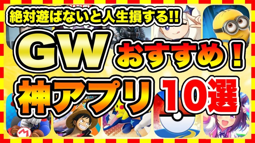 Write an article about 【おすすめスマホゲーム】2023年GWに絶対遊ぶべき神アプリゲーム10選【無課金 面白い ソシャゲ】【ゴールデンウイーク特集】 in 400 Japanese characters