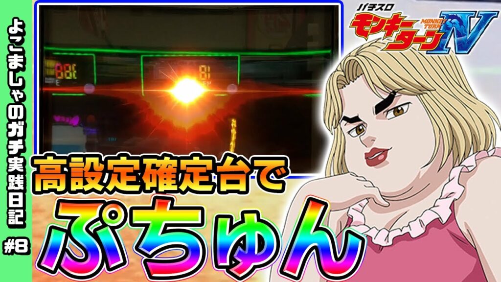 Write an article about 【モンキーターン4】高設定でまさかのプチュン発生!?6号機の救世主を打った結果 よこましゃのガチ実践日記 #8 in 400 characters Japanese